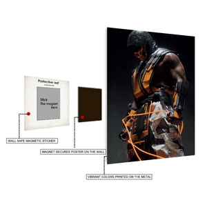 Scorpion Mortal Combat modern style Metal Posters | Premium, Waterproof & Magnet-Mounted Art