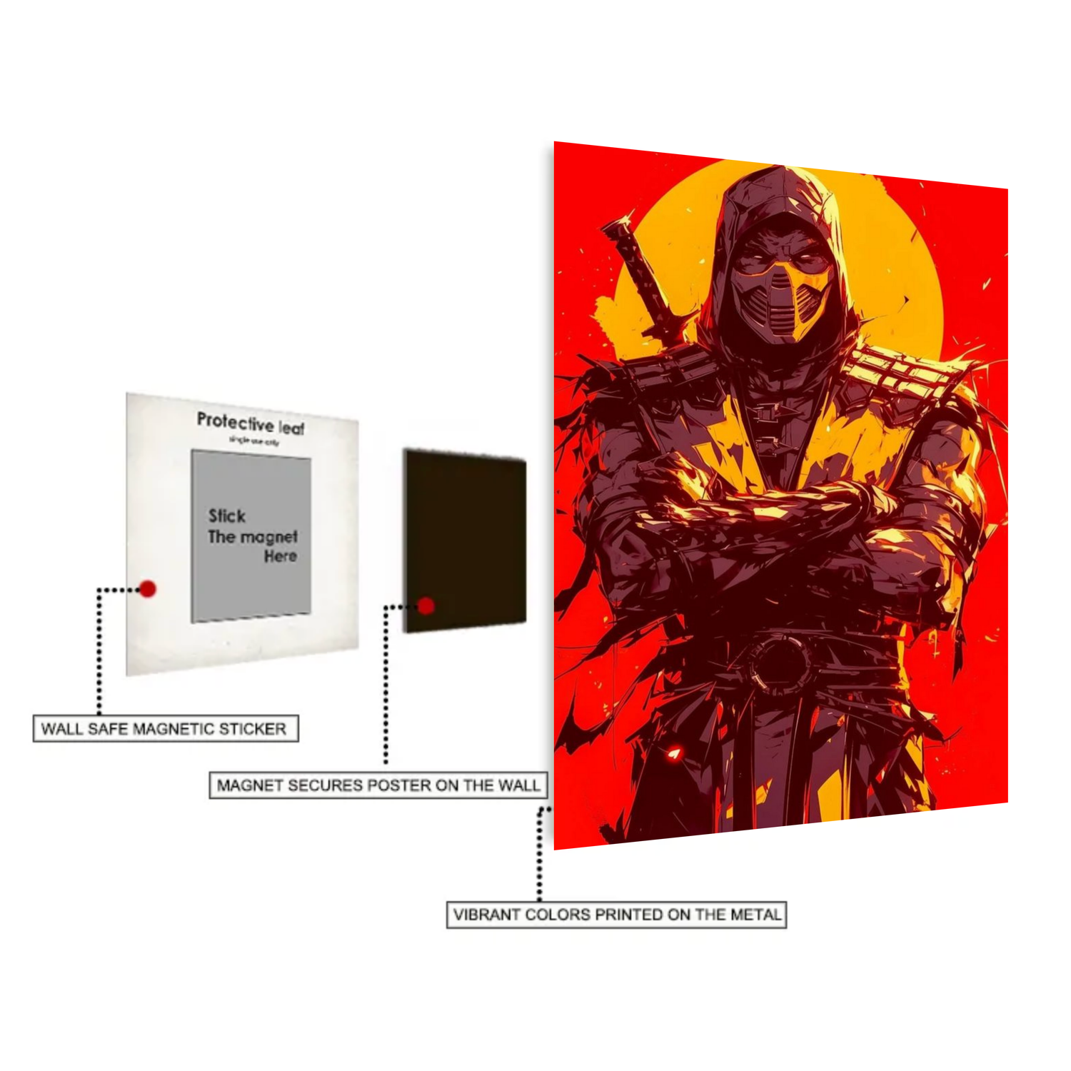 Scorpion Mortal Kombat Metal Wall Posters | Premium, Waterproof & Magnet-Mounted Art