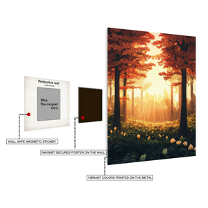 Sunset and Forest Metal Wall Posters | Premium, Waterproof & Magnet-Mounted Art
