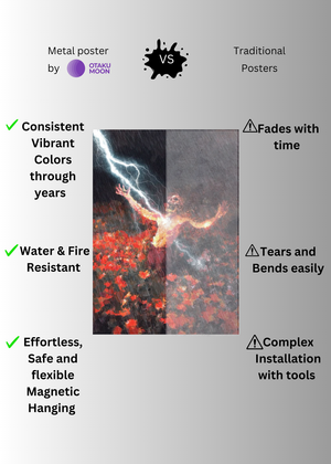 At Otaku Moon, we blend cutting-edge innovation with centuries-old Japanese craftsmanship to create metal wall posters that are as durable as they are breathtaking. Designed for art lovers who demand vibrancy, versatility, and longevity, our posters are handmade using futuristic techniques to deliver superior color contrast, remarkable detail, and a glossy finish that brings every artwork to life.