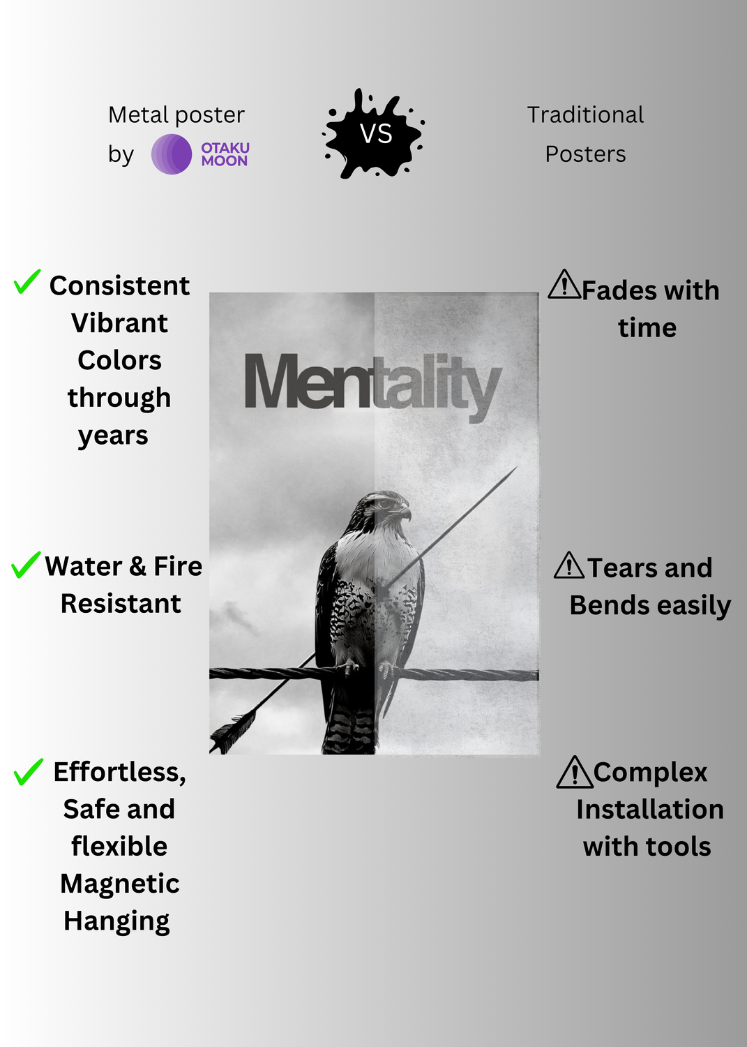 At Otaku Moon, we blend cutting-edge innovation with centuries-old Japanese craftsmanship to create metal wall posters that are as durable as they are breathtaking. Designed for art lovers who demand vibrancy, versatility, and longevity, our posters are handmade using futuristic techniques to deliver superior color contrast, remarkable detail, and a glossy finish that brings every artwork to life.
