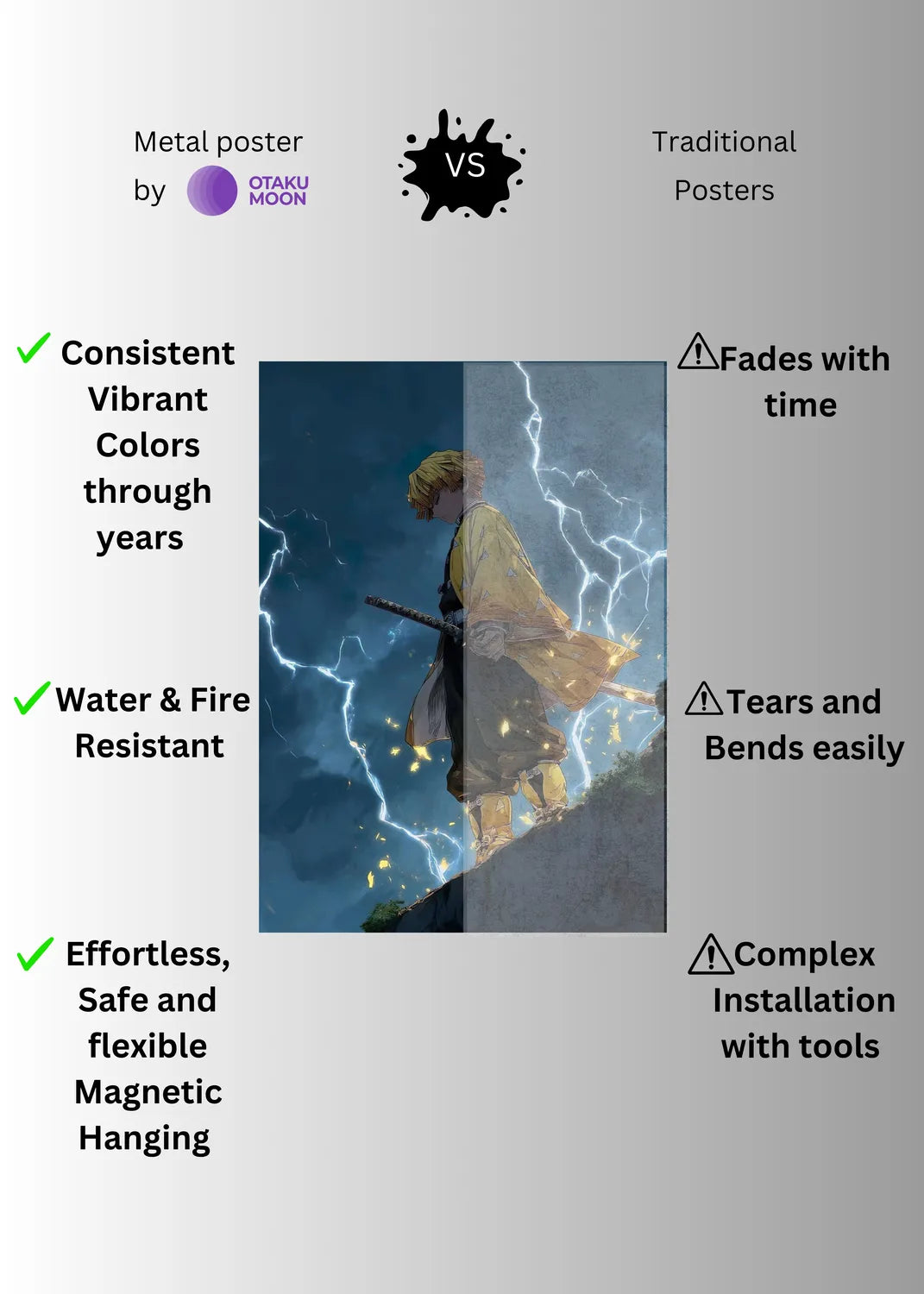 Zenitsu Demon Slayer Metal Posters | Premium, Waterproof & Magnet-Mounted Art
